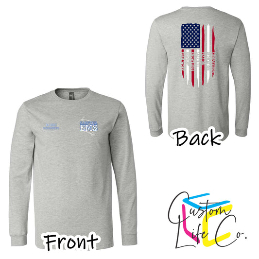 Sabetha EMS Long Sleeve T-Shirt with American Flag - Bella+Canvas